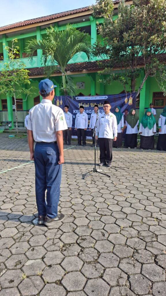 Pada kesempatan berikutnya, kegiatan Halal Bihalal dilanjutkan dalam bentuk apel pagi bersama seluruh siswa di halaman madrasah pada Senin, 30 Maret 2026. Kegiatan berlangsung dengan tertib dan khidmat, diawali dengan pembacaan ikrar yang diwakili oleh salah satu siswa sebagai bentuk komitmen untuk memperbaiki diri dan mempererat kebersamaan. Kepala madrasah kembali memberikan arahan serta penguatan kepada seluruh peserta didik tentang pentingnya menjaga persatuan, meningkatkan semangat belajar, serta menjadikan momentum Idulfitri sebagai awal yang baik dalam menjalani aktivitas ke depan.